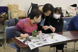 ● 日 時 : 令和7年12月11日(木) 13:30〜15:00 11月27日(木)に渋川福祉センターボランティア室で11月ボランティアサロンを開催しました。『松ぼっくりの手づくりツリー』をテーマに、布おもちゃを手作りして尾張旭おもちゃ図書館を支援しているToyToyを講師にお迎えして、